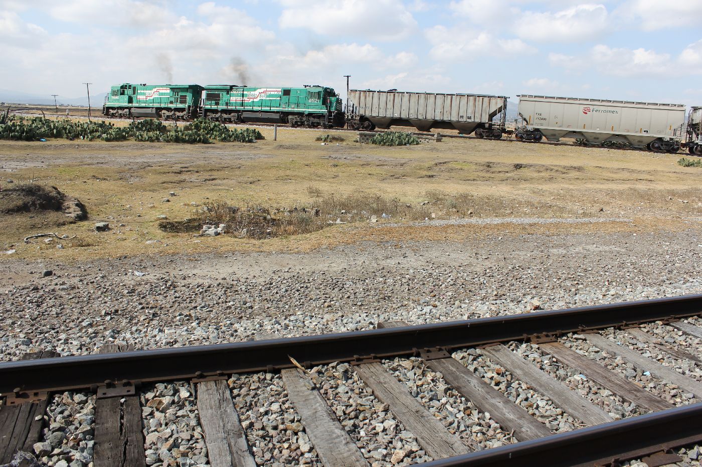 Starting off my 2011 trip through southeast Mexico, I began a day at the Ferrosur yard in Irolo Mexicano, Hidalgo hoping to catch the local that runs north to Linea H and Honey. I've always wanted to photograph the train passing underneath the impressive Arcos del Padre Tembleque on that line. However, when I arrived at the yard, I found a set of engines switching, building a train to depart southward. As luck would have it, they were instead taking a long cut of loaded grain hoppers to the massive grain elevators on Linea HB near Calpulalpan. This is the former narrow gauge Ferrocarril Interoceánico line to Puebla.